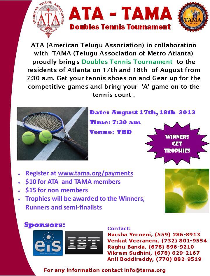 Doubles Tennis Tournament- Atlanta,GA - American Telugu Association