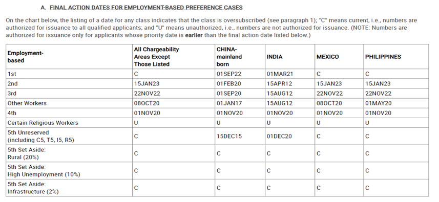 FINAL ACTION DATES FOR EMPLOYMENT-BASED PREFERENCE CASES